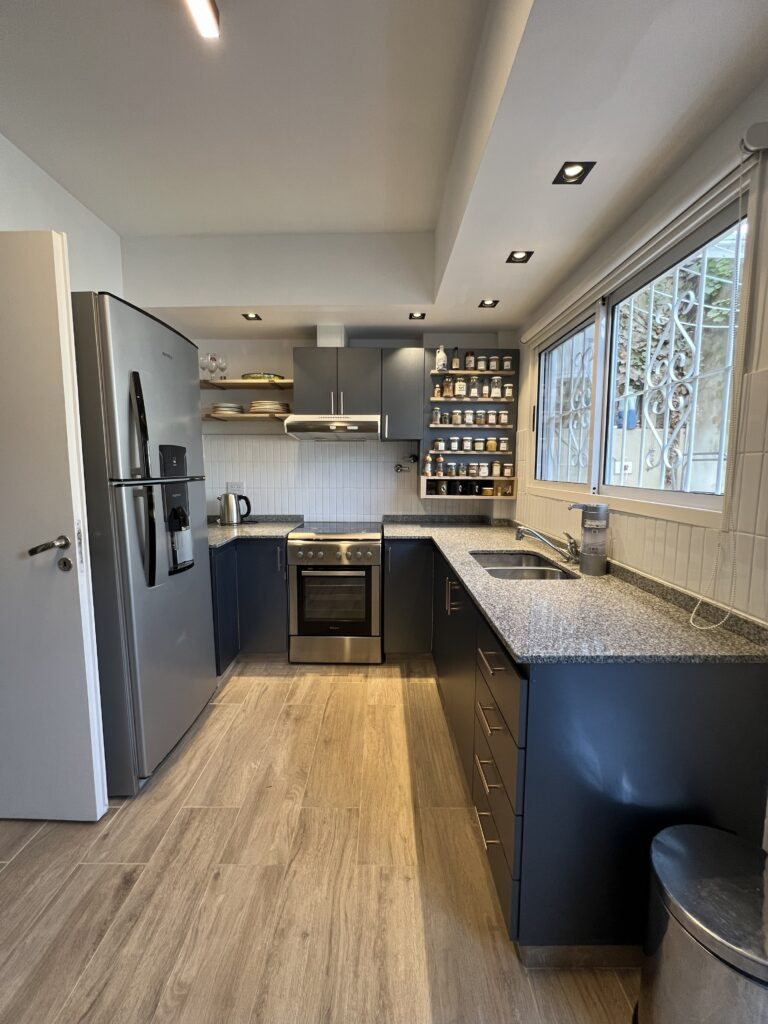 El proyecto consistió en la reforma integral de un departamento familiar en el barrio de Belgrano. La intervención incluyó cocina, living-comedor, dormitorio y dos baños, con el objetivo de optimizar la funcionalidad y potenciar la iluminación natural interior.