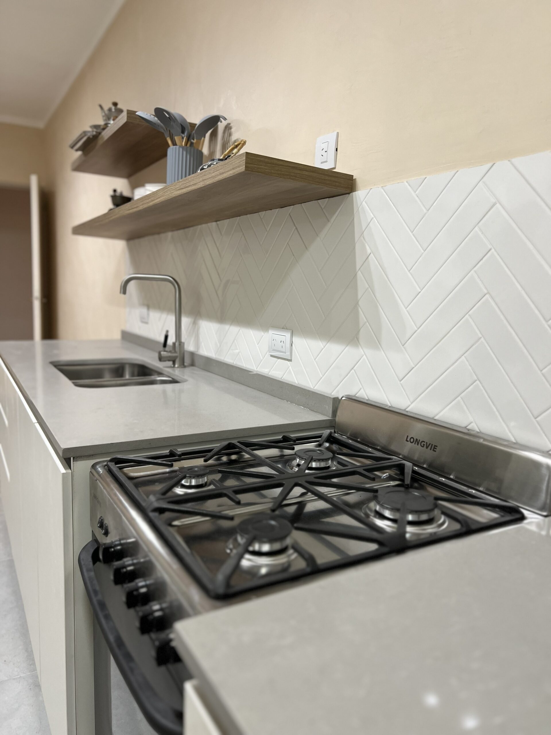 El proyecto consistió en la modernización de la cocina de un departamento ubicado en el barrio de Liniers. La intervención incluyó el reemplazo del mobiliario y los revestimientos, renovando por completo la imagen del espacio.