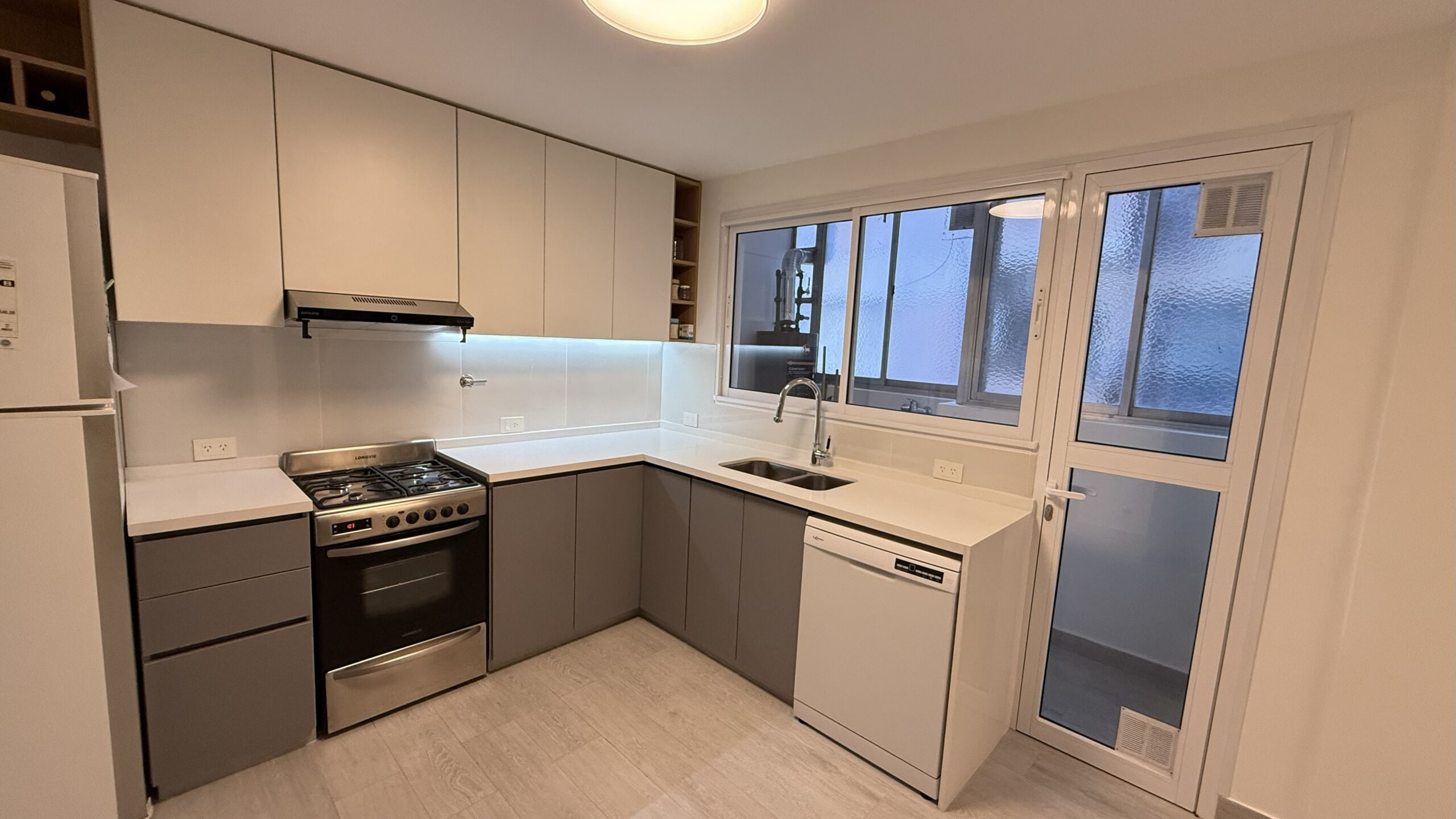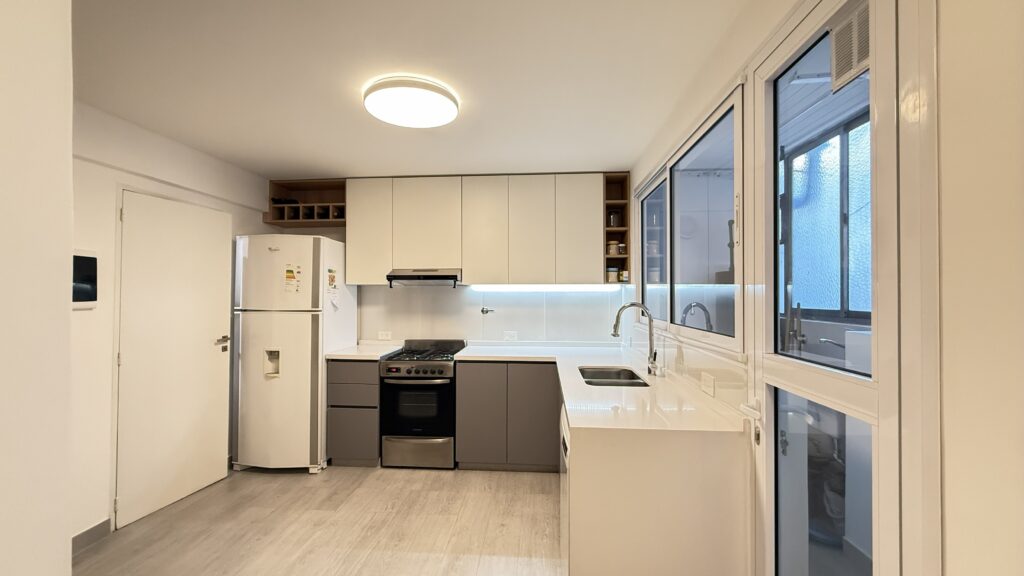 El proyecto consistió en la renovación de la cocina de una vivienda ubicada en Lanús. Se buscó lograr un espacio simple, moderno y funcional, adaptado a las necesidades cotidianas de sus habitantes.
