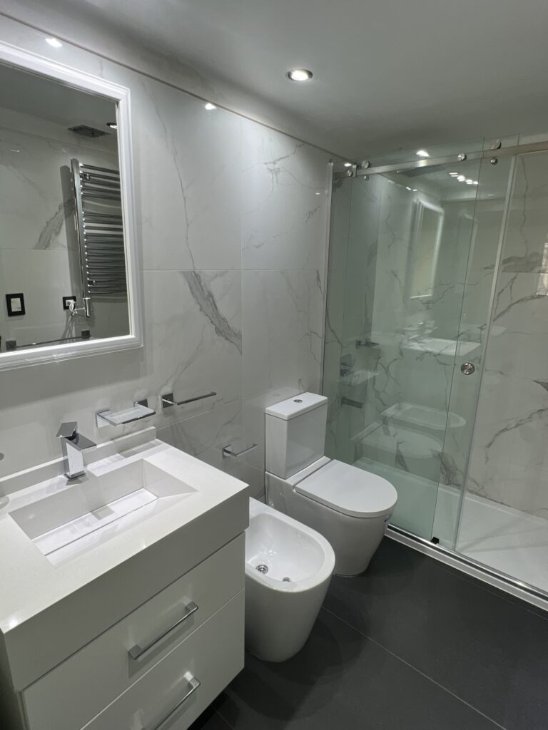 El proyecto abarcó la renovación integral de dos baños en una vivienda ubicada en el barrio de Villa Devoto. Se buscó revitalizar los espacios mediante el uso de revestimientos modernos y una paleta de materiales que aportan luminosidad y calidez.